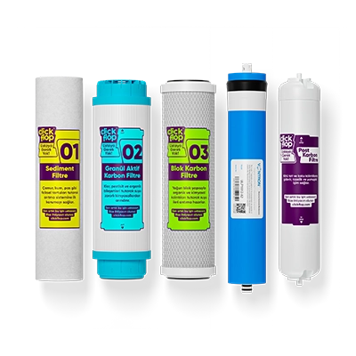 Bu 5 filtre her cihazda genellikle bulunurken, bazı cihazlarda ek olarak Mineral Filtre, Alkali Filtre gibi ek filtreler olabilir.