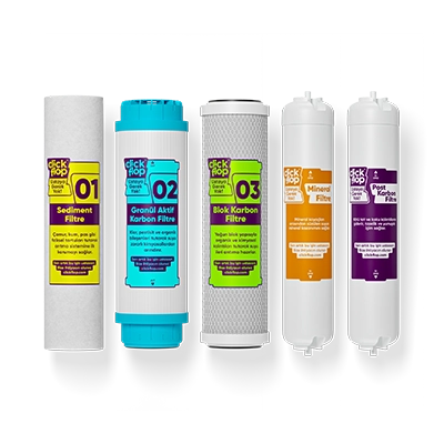 Bu 5 filtre her cihazda genellikle bulunurken, bazı cihazlarda ek olarak Mineral Filtre, Alkali Filtre gibi ek filtreler olabilir.